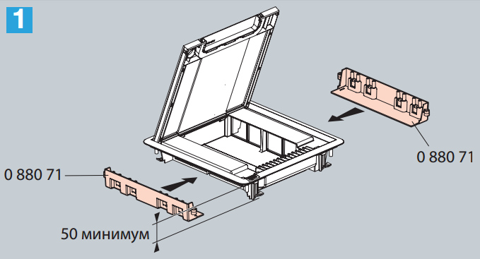Позволяет устанавливать до 16 модулей, верхняя крышка выполненна из пластика серого цвета RAL 7031 под покрытие (ковровое или паркетное).
